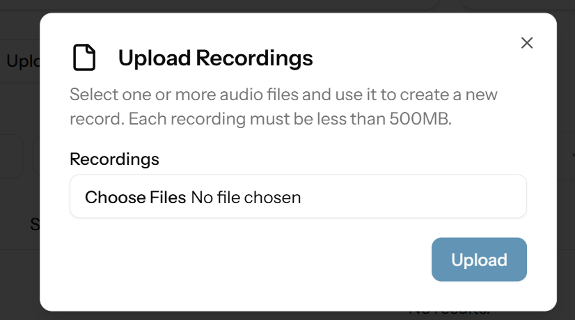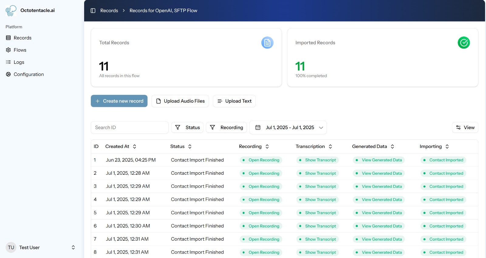 Our interface provides multiple ways of importing data: from selecting records to uploading recordings or text